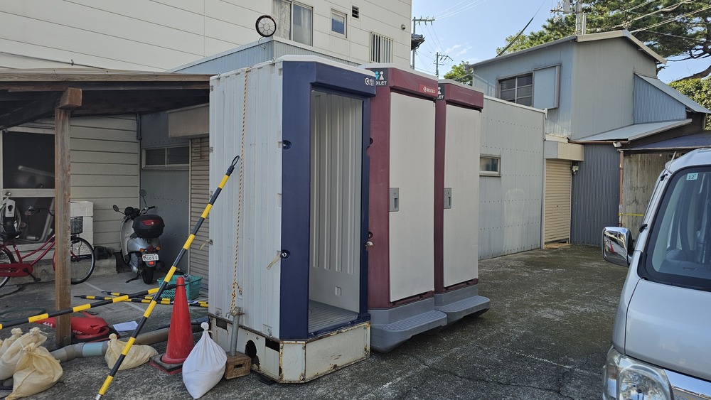 弊社ではだんじり祭りの間、駐車場に仮設トイレを設置しております。